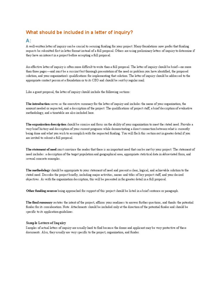 What Should Be Included In A Letter Of Inquiry Inquiry Business